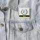 A delicate ivy wreath with a blue striped bow is layered over a fresh white background. Wedding appropriate design features the monogram "F" in blue. Button can be personalised with any name over the green ribbon banner. Design tip: For the font shown here, use all caps for the name.