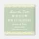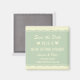 This delicate save the date magnet features a lace background with wedding details written in modern font.