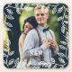 Delicate Leaves Frame Monogrammed Photo Square Paper Coaster
