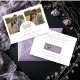 This delicate design features a pair of wedding rings surrounded by lilac-toned flowers, with soft shades created in digital watercolor style, producing a romantic and ethereal effect. The floral details, with fine petals and subtle color gradients, enhance the elegance and harmony of the composition, evoking the love and union symbolized by the rings. The balanced arrangement adds a sophisticated and charming touch, perfect for announcing a wedding date with an artistic flair.