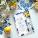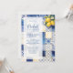 Delicate Mediterranean Tiles and Lemons Flowers in Blue Shades Wedding Bridal Shower Invitations Cards.