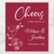 Elegant customisable wine labels for your wedding reception, featuring beautiful and delicate white orchids line drawing on one side, over a classic crimson red background, and the wording "Cheers to the wedding of" in white fonts. Easily edit the template fields to add the bride and groom names in a classy white script, and your wedding date in a modern all-caps font.