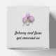 Delicate white orchids with purple grace this fully customisable favour box. (Text is for example only). It comes in many colours and shapes. This photo is available on multiple products so you can coordinate your special day!