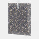 Seamless floral pattern of delicate pink buds on slender brown branches against a dark blue background, creating an elegant, calming design.