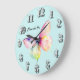 Delicate Pink Butterfly in Pastel Rainbow Colours Large Clock