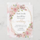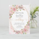 Delicate, feminine and pink describe this wedding invitation. Gorgeous pastel pink watercolor flowers with a gemstone geometric border and pretty script font. Easily edit the template to your desired details. Beautiful spring or summer wedding invitation suite. See our collection for more wedding invitation suite items in this theme. Delicate Pink Rose and Gold Wedding Invitation.