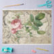 A beautiful delicate, velvety rose with slightly yellowed leaves on a background of antique papers. These papers were once decorated with decorative ornaments in the Baroque style. Decoupage tissue paper. This paper will be perfect for your craft projects