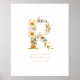 Delicate Romantic Floral R Letter in Gold Glitter Effect Posters Decor for Couples.