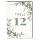 Delicate Romantic Flowers & Eucalyptus Wedding Table Number