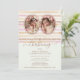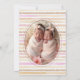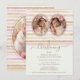 Delicate Romantic Glitter Stripes Baby Twins Baptist Christening Invitation Card with Oval 3-Photo.