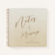 Delicate gradient gold notebook, with script typography "Notes and Musings" to inspire your creative ideas and thoughts, personalised with your name on the front and your monogram with name on the back. Perfect for journalling or planning. Simple. Elegant. Stylish. Add your own information by following the "Personalise this template" link.