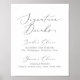 This delicate silver calligraphy signature drinks sign is perfect for a modern wedding. The romantic minimalist design features lovely and elegant silver gray typography on a white background with a clean and simple look.