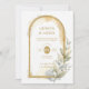 Delicate Spring Green & Beige Floral Arch Glitter Effect Wedding Invitation with Back QR Code