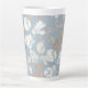 Delicate twigs with leaves on blue. latte mug