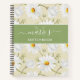 Delicate Watercolor Camomile PatternCustom Monogram Name Notebook. Personalised, Lovely white camomile watercolor flower pattern and name and monogram on a green background. Beautiful pattern of chamomile flowers from the garden with green foliage. Great romantic personalised gift for any occasion for girls who love white spring and summer flowers, chamomile, and watercolor style. Lovely+White+flowers, white+chamomile, white+floral, white+flowers, name+camomile+pattern, girly+white+blossom+flowers, white+and+green, blooming, botanical, bloom, watercolor, bouquet, girly, girls