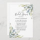 Modern Elegant Delicate Watercolor Botanical Greenery Bridal Shower Invitation Card includes green foliage, dusty blue leaves, sage green leaves and other beautiful botanical greenery.