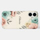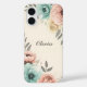 This elegant personalised phone case features delicate sketchy flowers with soft watercolor textures in blush pink, mint green, and pale yellow.