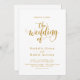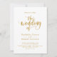 This elegant white-and-gold wedding invitation is perfect for a modern wedding. The simple design features elegant gold calligraphy on a clean white background. The invitation card includes the wedding details on the back instead of paying for a separate enclosure card.