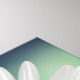 A serene photo of a single delicate with daisy. Soft dainty white petals with a bright yellow centre. The background is a misty greenish blue colour.