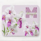 Cute and delicate white and magenta Cattleya Orchid Flowers painting Mousepad. Soft pastel pink background.