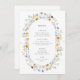 Elegant wildflower framed menu card featuring delicate summer wildflowers in blue, yellow, orange and purple.
