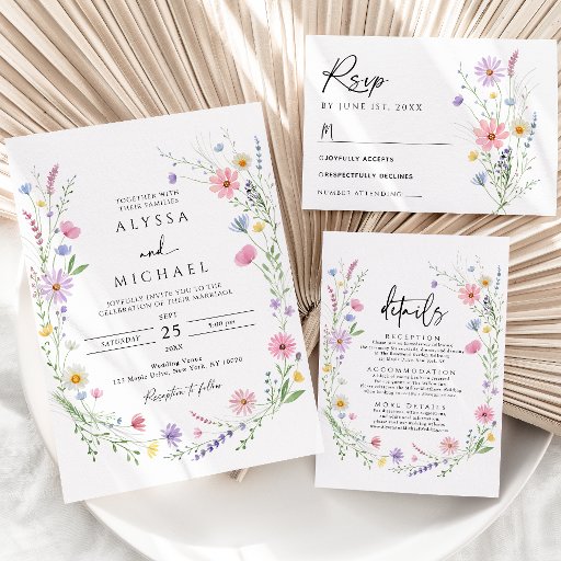 Guide your guests with ease using these hand-painted watercolor wildflower wedding table number cards. Featuring a delicate wreath of wildflowers in shades of blush pink, lavender, powder blue and soft sage green surrounding bold modern script, these cards bring a rustic yet elegant touch to your reception tables. Perfect for boho, garden, or spring and summer weddings, the design coordinates beautifully with the matching wildflower wedding invitation suite, including place cards, menus, and more. Printed double-sided for visibility, these table numbers are both practical and decorative.