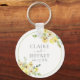 Delicate Yellow Floral Sage Green Custom Wedding Key Ring