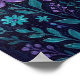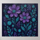 Textured acrylic painting of vibrant purple flowers and teal leaves against a dark background, layered petals and foliage evoke elegant botanical charm.