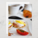 Delicious breakfast with eggs Benedict, vegetables and coffee