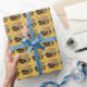 Photograph of a delicious cheeseburger tiled over length of paper. Customisable yellow background colour.
