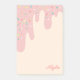 Delicious sticky notepad with a cake inspired design with delicious strawberry frosting dripping down the vanilla yellow page and strewn with lots of sprinkles in different shapes and your name in the corner in a pretty script. Frosting post-it notepad with sprinkles in pink personlized with your name in a pink script. The perfect sticky notepad for a girl who loves delicious cakes and treats, frosting and sprinkles and icing and all that yummy stuff!
