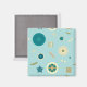 Microscopic diatoms, single-celled algae with a cell wall made of silica, create a fun pattern on a sea of pale turquoise and show off some of the many shapes that they come in, including circles, stars, squares, and others.