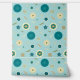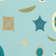 Microscopic diatoms, single-celled algae with a cell wall made of silica, create a fun pattern on a sea of pale turquoise and show off some of the many shapes that they come in, including circles, stars, squares, and others.