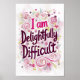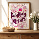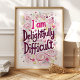 Embrace your unique personality with this whimsical "I am Delightfully Difficult" art print. Featuring a playful handwritten font and delicate floral accents, this piece celebrates those who dare to be different. Perfect for adding a touch of sassy charm to your bedroom, office, or anywhere you need a reminder of your fabulous complexity.