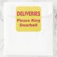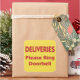 Deliveries Please Ring Doorbell sticker to remind delivery drivers to leave your package at your front door and ring the bell so you know it's there. Attention getting red type with your choice of background colour.