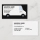 A simple drawing of a delivery van is on the front of the card. Your business name, company slogan, name, title, and phone number are printed on the side panel of the commercial van as if it was painted there. The van is white with black and grey lettering. The van is drawn in a minimalist, almost cartoon style. Behind the van is a solid black background that goes with the black lettering. The back has additional contact information. Good for the following types of businesses: trucking, delivery, shipping, logistics, moving, hauling and any other business that uses a big van. The card can also be used for mobile services such as cleaning, janitorial, food trucks, handyman, plumbers, electricians, carpenters, painters, home installations, home health services, HVAC, etc.