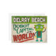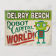 A funny Delray Beach Florida vintage travel design featuring a friendly robot with fun retro style text that says, "Delray Beach, Robot Capital of the world!"