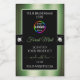 The design features a noble shimmering forest green frame with fine decor lines, on a plain black background.