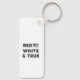 This keychain features a bold and patriotic design with the phrase “RED WHITE & TRUE” in capitalised letters. The design includes an image of the United States flag in grayscale, positioned to the right of the text. Made from high-quality, durable material, this keychain is perfect for showcasing your national pride. Its compact size makes it a stylish and practical accessory for your keys, bags, or as a thoughtful gift.