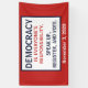 Democracy is Everyone's Responsibility. Speak Up, Register and Vote. Democracy is everyone's responsibility, every day. Speak up between elections, and make sure that you are registered and that you vote in all local, state, and national elections. Design description: The words, "Democracy is everyone's responsibility. Speak up, Register and vote" over 5 lines, in red and dark blue all caps fonts. As shown, the words shown on a white background enclosed by a dark blue rectangle over a red base layer.