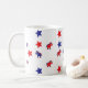 Illustrated red, white and blue Democrat Donkey with stars on white.