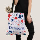 This large size tote bag is shown with a patriotic stars print with Democrat text.