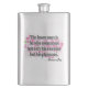 The product is a good size and came exactly as it was pictured. The lid is not attached to the flask, which could be dangerous on drunken nights... The print came out surprisingly well and looks very sharp. Would definitely recommend.