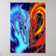 Two demon, one of water and the other of fire, looking angry at each other, ready for a fight. This is a AI generated art.
