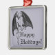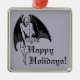 Embrace the spooky side of the holiday season with this striking square metal Christmas ornament featuring a captivating illustration of a winged demon or devil. Against a soft lavender background, the words "Happy Holidays!" are boldly displayed in elegant black, creating a unique juxtaposition that will delight those with a taste for the gothic and horror aesthetic.
