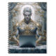 Mystical warrior with horns and ornate gold armor working intently on a laptop in a baroque setting. Powerful motif for fantasy fans, gamers, and tech enthusiasts with a sense of epic aesthetics.