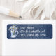 These return address labels have a blue denim background with a vase of Daisys, to the left. The text box can be personalised with your information.
