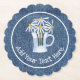 This design features a blue denim background, with a vase of Daisys in the lower right corner. There's an area, on the bottom where you can add your own text, to customise the design for any party or occasion.