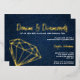 Celebrate in style with this modern and elegant gold foil denim and diamonds birthday party invitation! This design features a rich, deep indigo blue jean texture that provides a stunning high-contrast backdrop for the luxury metallic accents. A bold, geometric diamond graphic is paired with sophisticated script calligraphy to create a trendy "western glam" look that is perfect for an adult birthday celebration.