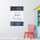 The main text area is in white with customizable text boxes. Silver confetti is scattered across the denim sections and is scattered